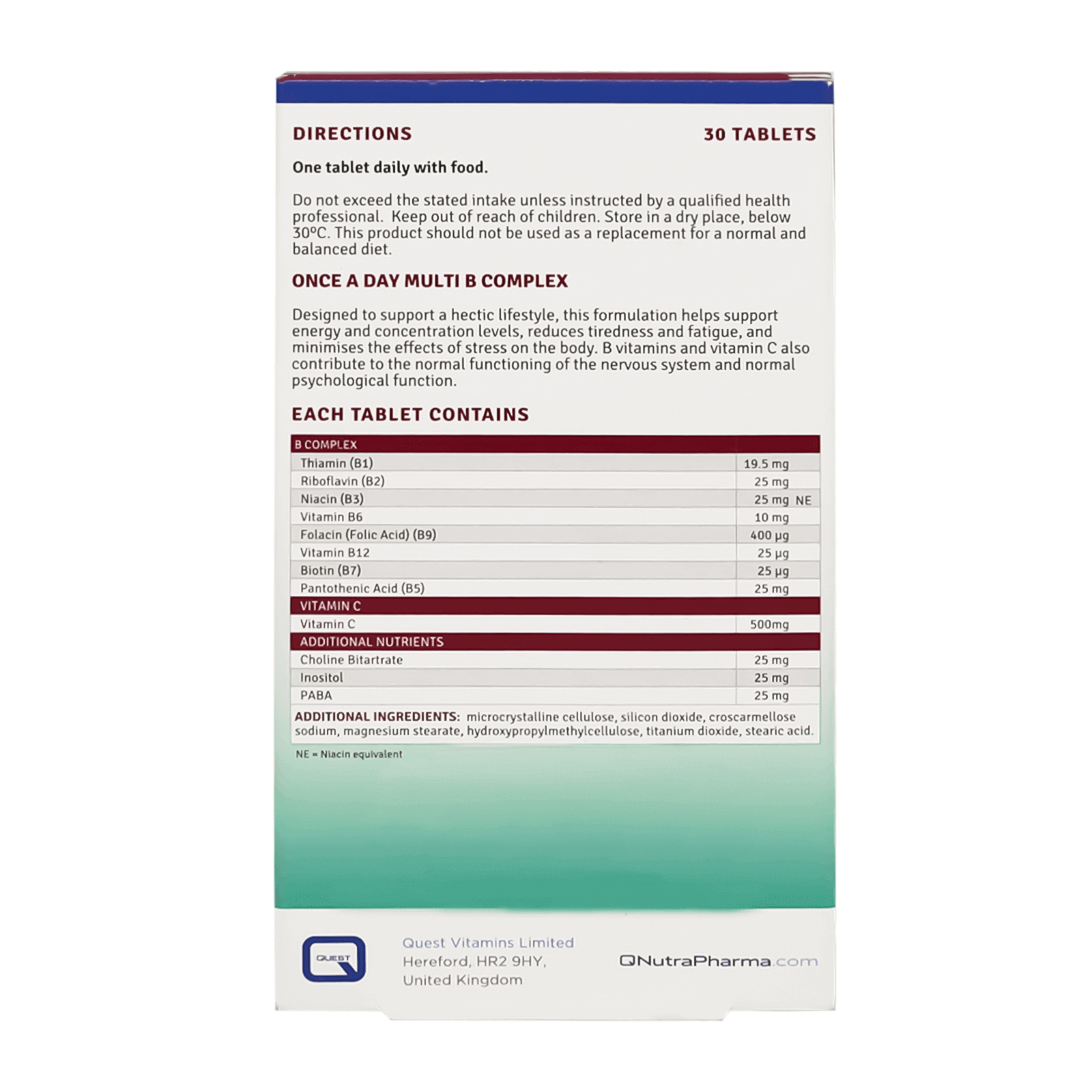 Quest Once A Day Multi B Complex Tabs 30'S